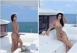 Trên trang cá nhân mới đây, Vũ Thuý Quỳnh đã đăng tải loạt ảnh check-in trên du thuyền riêng, diện váy màu nude ôm sát, tôn lên vóc dáng quyến rũ cùng nhan sắc rạng ngời. Điều trùng hợp là du thuyền mà Vũ Thúy Quỳnh đăng tải lại chính là nơi Đức Phạm vừa đăng ảnh ngọt ngào của cả hai.