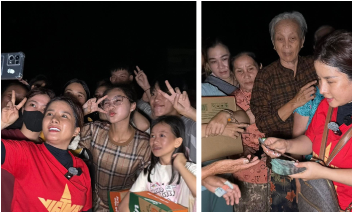 Cô kể lại: “Khi tôi ra đến chỗ bà con đã tầm 8h45 tối. Sau khi tôi chào hỏi bà con thì cỡ 8h55 là phát quà luôn cho bà con, chứ tôi không hề bắt bà con đợi tôi từ 4 giờ chiều đến 8 – 9 giờ tối như các thông tin khác đưa.