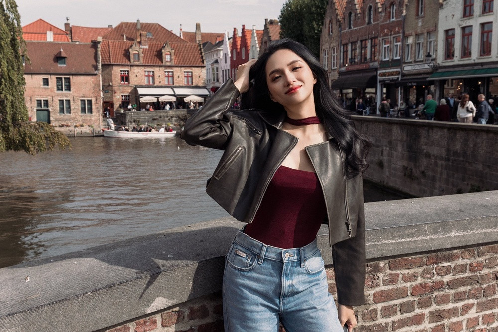 Mới đây, Hương Giang khoe loạt ảnh check-in sang xịn trời Âu. Người đẹp chuyển giới đăng hình kèm dòng trạng thái: “Thí sinh trẻ nhất cuộc thi đang phơi nắng trong lớp make up do cô tự chuẩn bị tại trời Âu.”