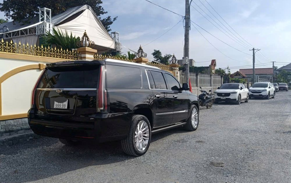 Chiếc Cadillac mang biển số ngũ quý 999.99 xuất hiện tại lễ nạp tài của hoa hậu Đỗ Thị Hà và thiếu gia Tập đoàn Sơn Hải. Ảnh: Quách Du