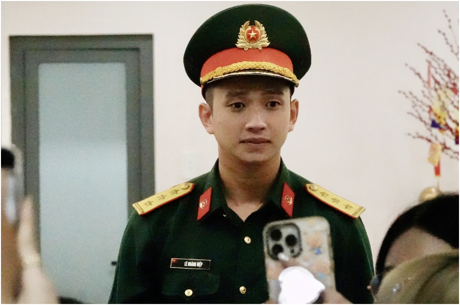 Thượng uý Lê Hoàng Hiệp sinh năm 1996, hiện công tác tại Sư đoàn 9 – Quân đoàn 4. Sau clip bước xuống xe cùng đồng đội, anh trở thành một trong những gương mặt được quan tâm nhất trên mạng xã hội.