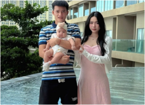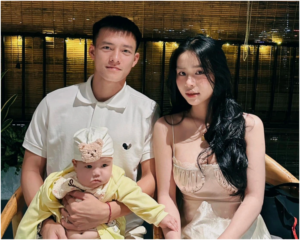 Thời điểm đó, con gái thức giấc, Ngọc Lan vào phòng dỗ dành bé. Nghe tiếng hô “vào, vào” bên ngoài, cô vội vàng bế con chạy ra. Khoảnh khắc ăn mừng càng đặc biệt hơn vì chồng là người ghi bàn thắng “quý như vàng”.