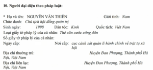 Ông Nguyễn Văn Thiên (sinh năm 1998) giữ chức vụ Chủ tịch HĐQT kiêm Người đại diện pháp luật doanh nghiệp. Theo tìm hiểu Win Business Academy từng mở khóa đào tạo tài chính gia đình online hồi tháng 7. Một khóa học có giá 1 triệu đồng nhưng được giảm còn 299.000 đồng.