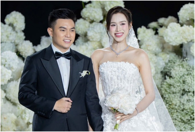 Trong hôn lễ ở Hà Nội, hoa hậu Đỗ Thị Hà và doanh nhân Nguyễn Viết Vương thoải mái thể hiện tình cảm, khác với đám cưới ở quê.