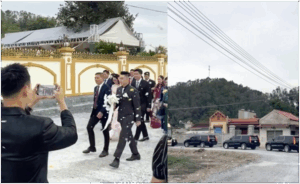 Dù quãng đường di chuyển khá xa và lễ đón dâu diễn ra từ sáng sớm, các nghi thức vẫn được thực hiện đầy đủ, chỉn chu. Đáng chú ý, khoảnh khắc mẹ chú rể – phu nhân Tập đoàn Sơn Hải rời đi ngay trước khi con trai bước vào nhà vợ đã khiến nhiều người quan tâm.