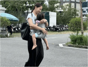 Lan Phương cho biết đưa con theo cùng vì Mia bị sốt, cô không gửi được bé cho ai trông hộ.