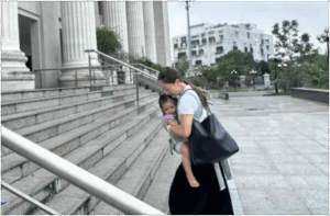 Sáng ngày 9/9, diễn viên Lan Phương có mặt tại Tòa án Nhân dân thành phố Hà Nội để tham dự phiên sơ thẩm xét xử vụ ly hôn với ông xã người Anh David Duffy. Điểm gây chú ý là nữ diễn viên mang theo con gái nhỏ hơn một tuổi, cùng túi lớn đựng đồ dùng cá nhân và thức ăn cho bé.