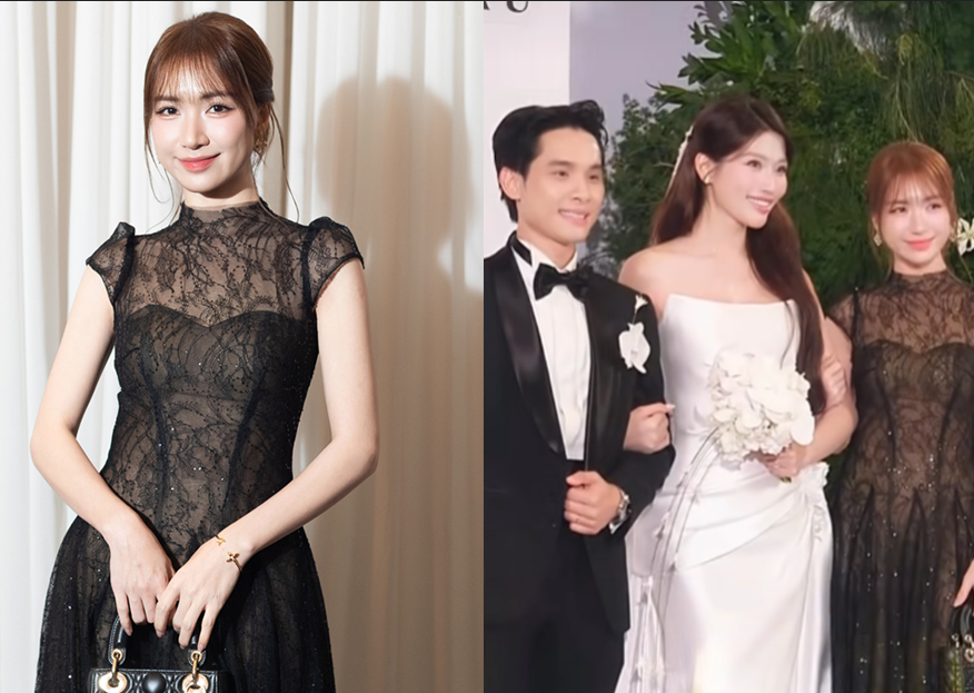 Không lâu sau đó, tiệc cưới trở nên tưng bừng khi loạt sao đình đám xuất hiện. Ngô Kiến Huy diện bộ suit xanh ngọc trông cực “hack tuổi” đến chúc mừng đàn em. Trong khi đó Hoà Minzy, Puka, Khổng Tú Quỳnh, Sam và loạt mỹ nhân Việt lên đồ “chặt chém”, khoe nhan sắc không thua kém trước dàn Hoa – Á hậu và người mẫu.