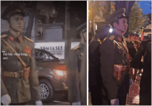 Những hình ảnh chiến sĩ Lê Hoàng Hiệp qua góc quay của người qua đường. (Nguồn: Hồ Quang Huế, @bodoixinhgai)