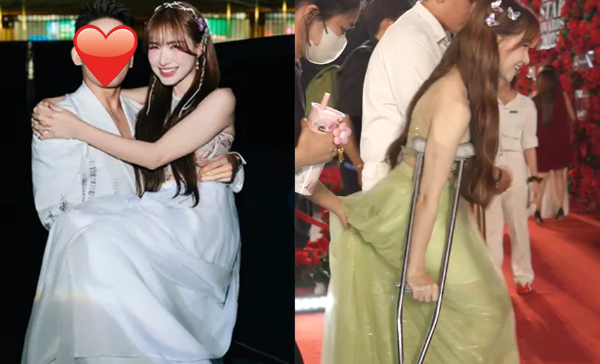 Trước đó, tại một lễ trao giải diễn ra tại TP.HCM, Hoà Minzy trở thành tâm điểm khi xuất hiện với tình trạng chấn thương. Nữ ca sĩ chống nạng, hai tay băng bó, di chuyển hạn chế nhưng vẫn lựa chọn giày cao gót và bộ váy chỉn chu.