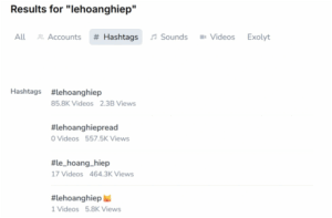 Theo số liệu từ Exolyt (công cụ phân tích phổ biến của TikTok) từ khóa #lehoanghiep hiện có hơn 85.000 video gắn thẻ, đạt tổng cộng hơn 2,3 tỷ lượt xem.