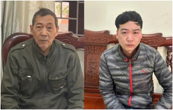 Trần Quốc Lương (phải) và bố đẻ là Trần Nhật Hòa (Ảnh: Công an Hà Nội).