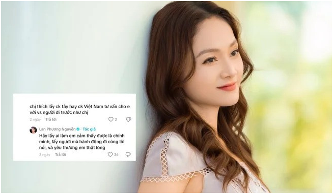 Mới đây, khi được một cư dân mạng hỏi: “Chị thích lấy chồng Tây hay chồng Việt Nam, tư vấn cho em với người đi trước như chị?”.