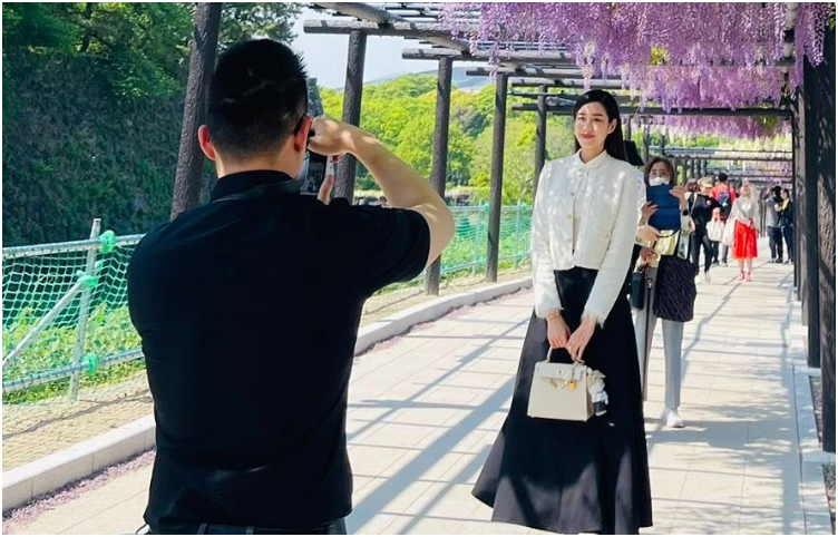 Hoa hậu Đỗ Thị Hà được chồng doanh nhân chụp ảnh “sống ảo” khi đi du lịch