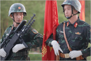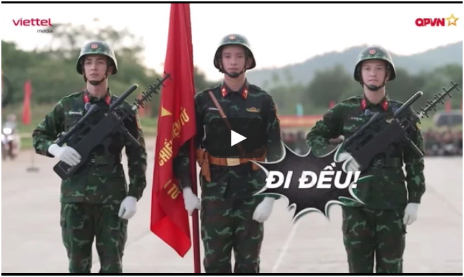 Sau đó, họ được Thượng úy Lê Hoàng Hiệp hướng dẫn động tác đi đều trong điều lệnh quân ngũ, thực hiện nghi thức rước cờ.