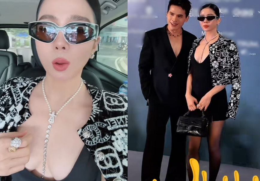 Xuất hiện tại event, Lệ Quyên nhanh chóng chiếm spotlight nhờ giao diện cực kì sexy và đậm mùi tiền. Cụ thể, nữ ca sĩ diện set đồ đen sang chảnh với chiếc đầm cổ khoét sâu tít khoe vòng 1 lấp ló kết hợp cùng áo khoác ngoài và túi xách của nhà mốt Chanel.