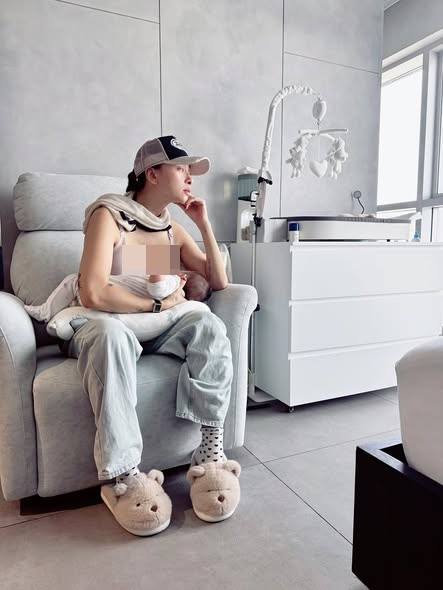 Điều khiến dân tình chú ý hơn cả chính là sắc vóc mẹ bỉm. Bà xã Huy Trần được khen trông có da có thịt hơn hồi mới xinh. Ngoài ra, dù đang bận bịu, quần áo xộc xệch cho con bú nhưng trông Ngô Thanh Vân vẫn rất thời thượng.