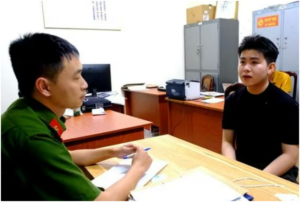 Đối tượng Nguyễn Lâm Thái tại cơ quan công an. Ảnh: CA Lâm Đồng
