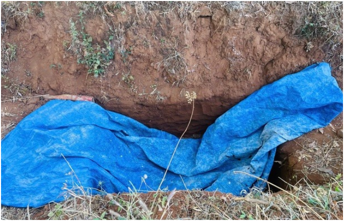 Tại hiện trường, vị trí chiếc xe nằm trong một hố đất có dấu hiệu bị đào bới bất thường. Dựa trên lớp đất mới bị xáo trộn cùng các dấu vết xung quanh, nhiều khả năng chiếc xe chỉ mới được chôn giấu trong thời gian gần đây.