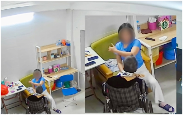 Hình ảnh từ camera thể hiện người giúp việc thường xuyên quát tháo, chửi mắng cụ N., dù cụ phải ngồi xe lăn và không thể tự sinh hoạt. Đáng chú ý, người này nhiều lần ép cụ bà phải “ngồi thẳng”, khi cụ không thực hiện được thì bị tát vào mặt, bẻ cổ và đánh mạnh. Các hành vi bạo lực còn xảy ra cả khi cụ nằm trên giường để thay quần áo, vệ sinh cá nhân.