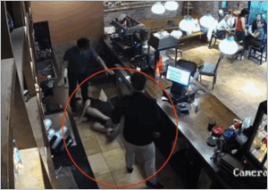 Nam nhân viên bị đánh ngã ra sàn. Ảnh: Chụp màn hình