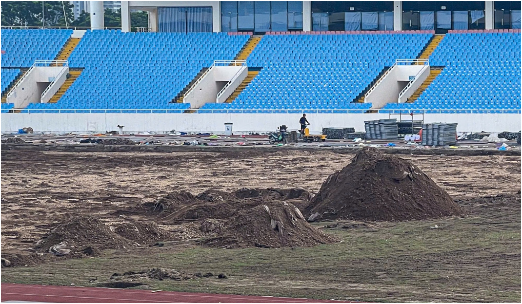 Theo ghi nhận, đơn vị thi công đã tiến hành bóc lớp cỏ cũ, đào xới và xử lý nền đất. Công tác cải tiến bao gồm san Thiết bị bằng cách làm mới nền tảng với độ sâu khoảng 40–50 cm, trước khi tiến hành trồng lớp cỏ mới đạt chuẩn. Song song với đó, hệ thống phun nước cũng được nâng cấp để đảm bảo khả năng chăm sóc và duy trì chất lượng sân trong thời gian dài.