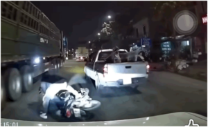 Mới đây, mạng xã hội lan truyền clip từ camera hành trình ghi lại cảnh tượng hãi hùng xảy ra tối 27/2 tại khu vực nút giao Tam Trinh – Vành đai 3 (Hoàng Mai, Hà Nội). Một chiếc xe bán tải bất ngờ lạng lách, ép xe máy chở theo 2 người lớn và 1 trẻ em ngã xuống đường, ngay sát một chiếc xe tải đang lưu thông.