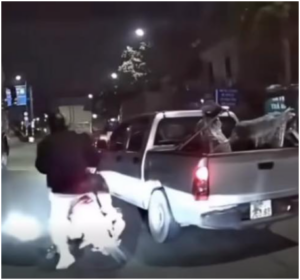 Hành vi máu lạnh của tài xế xe bán tải khiến cộng đồng không khỏi bức xúc. (Ảnh chụp màn hình)