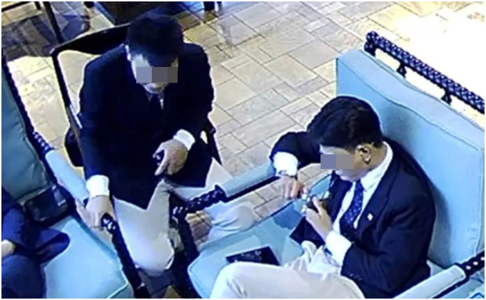 Sau lần nhắc thứ ba, một người trong nhóm ra hiệu, ngay lập tức người ngồi cạnh tiến tới quầy và tung liên tiếp hai cú đấm vào mặt nhân viên, khiến nạn nhân ngã xuống sàn. Người được gọi là “tổng tài” sau đó giơ tay ra hiệu và nói “thôi, thôi, thôi” rồi quay về chỗ ngồi. Toàn bộ sự việc đã được camera an ninh ghi lại.