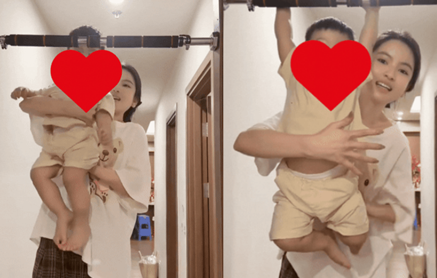 Mới đây, nàng WAG tiếp tục gây chú ý khi khoe clip cho quý tử tập đu xà. Từ hình ảnh đăng tải cho thấy, Lido lúc này nắm tay vào thanh xà ngang trong khi Chu Thanh Huyền bỏ tay ra nhưng vẫn trong tư thế đỡ con. Vừa tập 2 mẹ con vừa cười vô cùng vui vẻ.