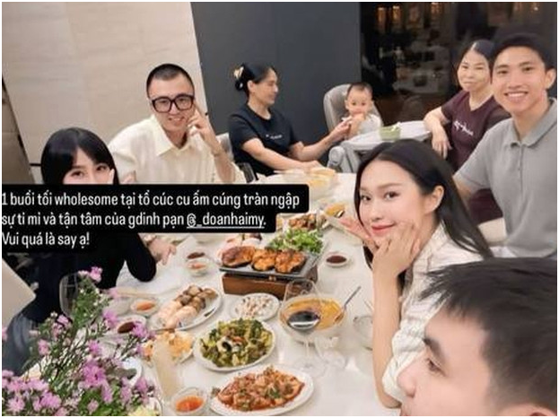 Theo đó, mẹ Văn Hậu lộ diện giản dị, ngồi tại bàn vừa ăn vừa chăm cháu nhỏ và quan sát các con vui đùa. Thỉnh thoảng, bà nở nụ cười khi nhìn các con trò chuyện vui vẻ, cho thấy sự gắn kết giữa các thành viên. Thế mới thấy, Hải My dù là tiểu thư danh giá nhưng lại rất khéo léo, tinh tế trong cách ứng xử với gia đình chồng.